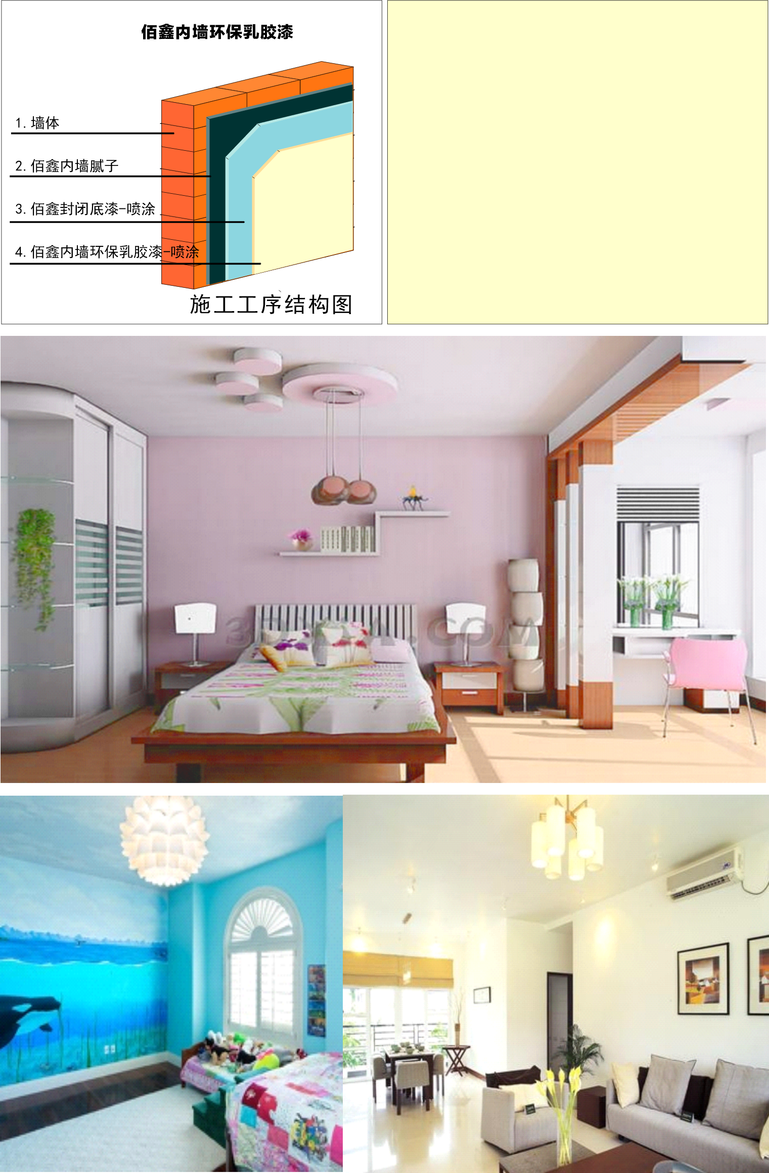 5、内墙乳胶漆是目前居室装修应用最普遍的装饰材料之一,它具有施工方便、遮盖力强、色彩丰富、耐擦洗等许多优点,色彩搭配得当、质量得到保证,能够给家庭提供一个温馨的环境。